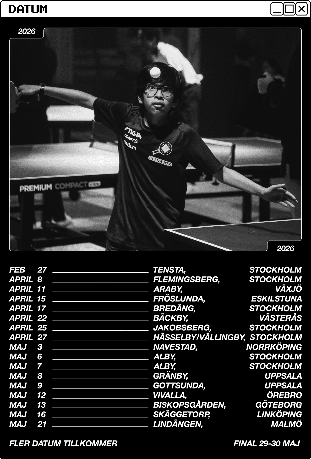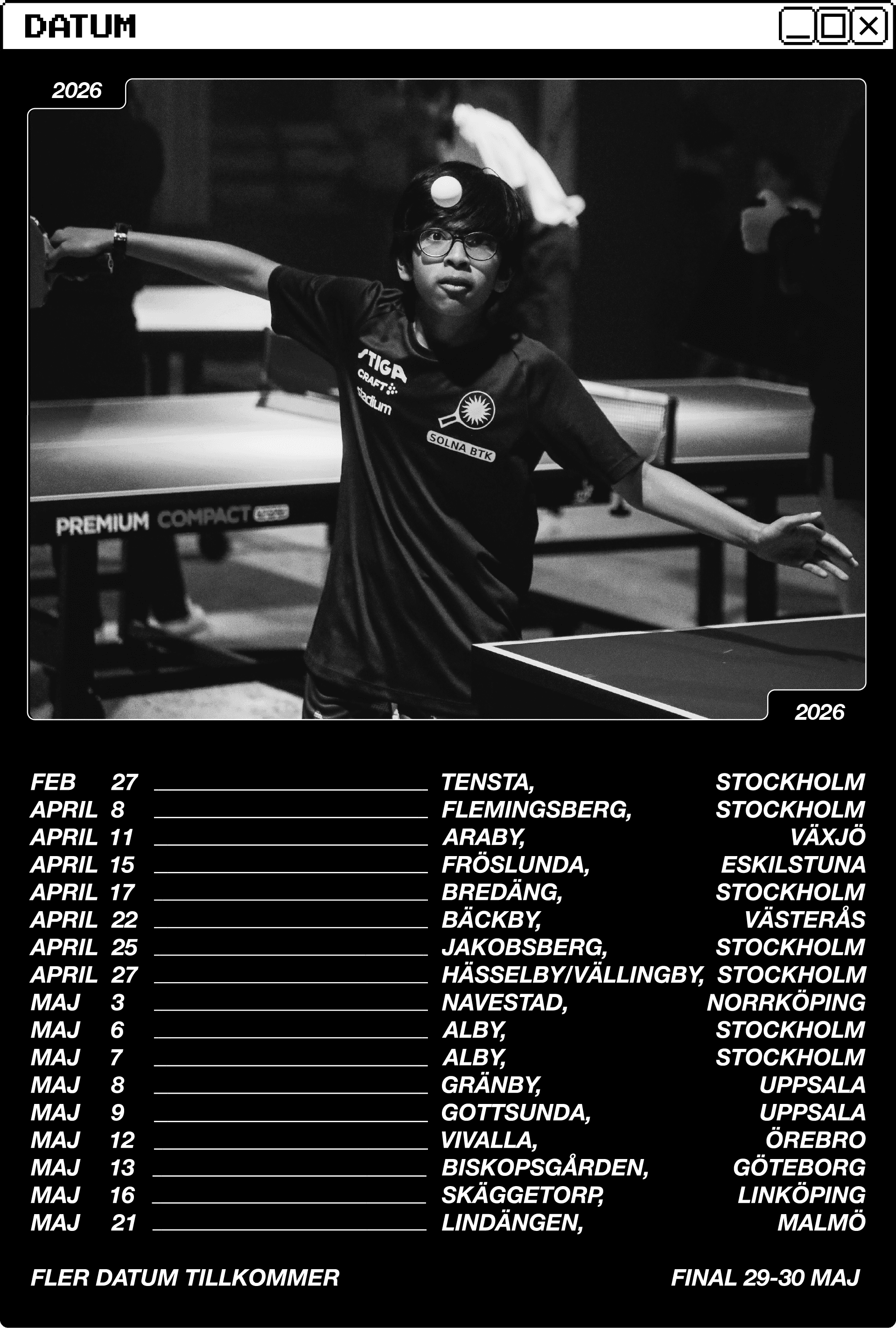 +400 deltagare ur årskurs 4, 5 & 6 kvalar in och får tävla i 6 st kategorier (killar + tjejer) under finalspelet som avgörs i slutet av Maj 2026.