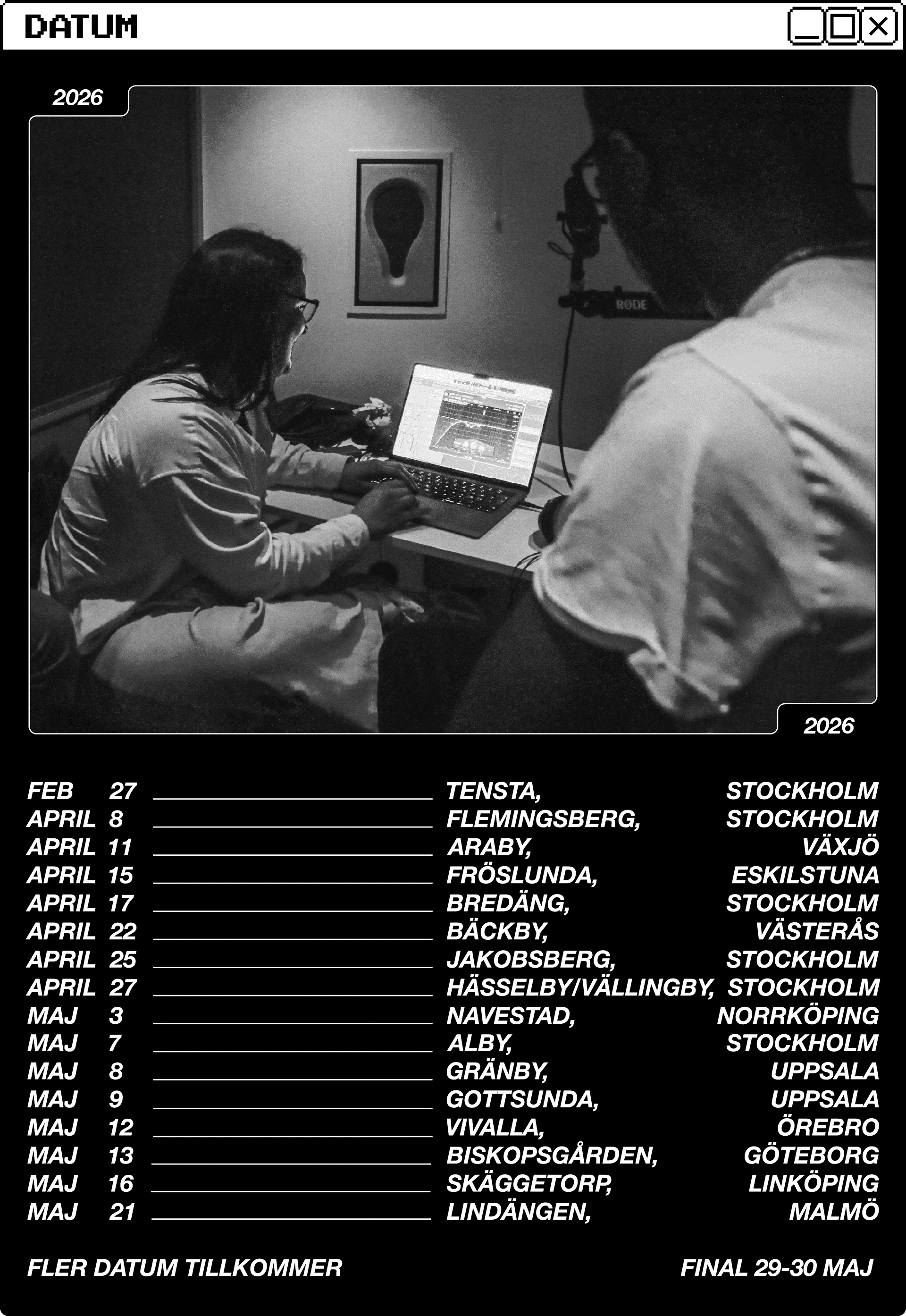Är du +13 år och intresserad av att lära dig mer om hur musikbranschen fungerar? Vill du gå workshops i hur man skriver texter, hur man producerar musik eller hur man spelar in i en studio? Anmäl dig genom att fylla i dina uppgifter i formuläret nedan.